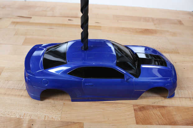 Perfore un orificio de 1/2" en la parte superior del bastidor del coche en el punto de montaje de la cámara pasará a través.