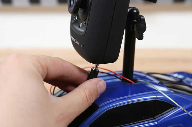Para encender el auto, golpeó el interruptor de encendido en la parte inferior de su marco y enchufe la clavija del tipo K en la cámara.
