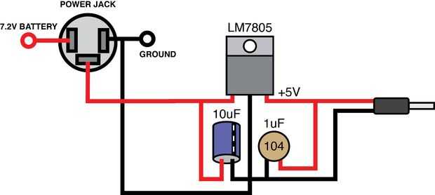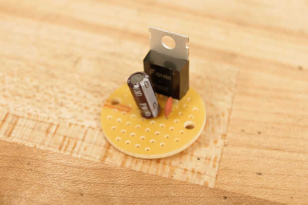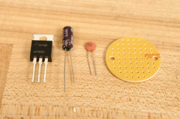Construir el circuito para convertir 7.2V a 5V en el 1" Ronda PCB tal como se especifica en el esquema.