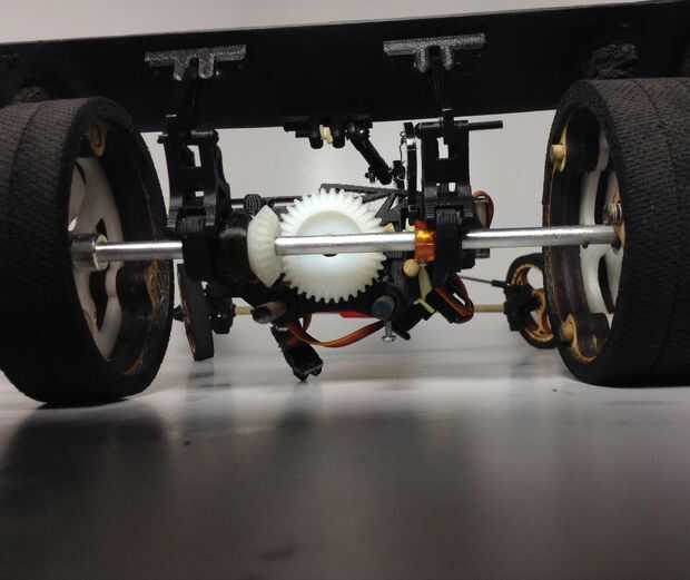 - Sólo utiliza dos micro servos: 1 para el mecanismo de dirección y el otro para el embrague / romper el sistema