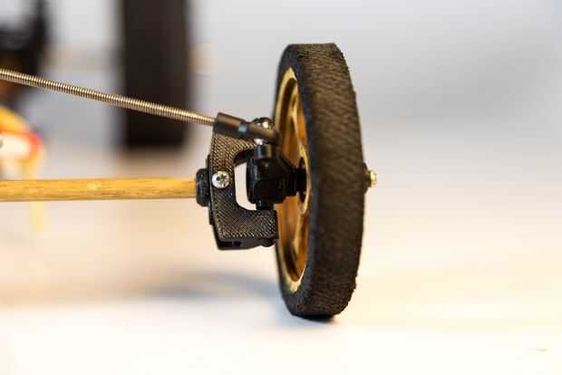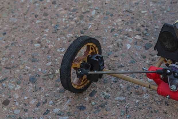 En este paso vamos a compilar las ruedas delanteras para el mecanismo de dirección. Es difícil observar con las imágenes dadas, pero la parte de dirección que sujeta el nudillo es ajustable. Yo llamo a esto el marco de la caída, sólo porque se puede ajustar el ángulo de la comba. Esto es una gran característica de un coche rc, ya que permite ajustar la cámara en diferentes ángulos y prueba los mejores resultados.