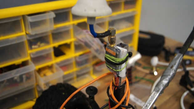 Explorar cuál es la superficie de las aguas con un periscopio inverso. Se trata deun poste de PVC con 2 cámaras GoPro unida, 1 que tiene un video en vivo a la superficie. Su batería todos para portabilidad. También he añadido un gancho para recuperar