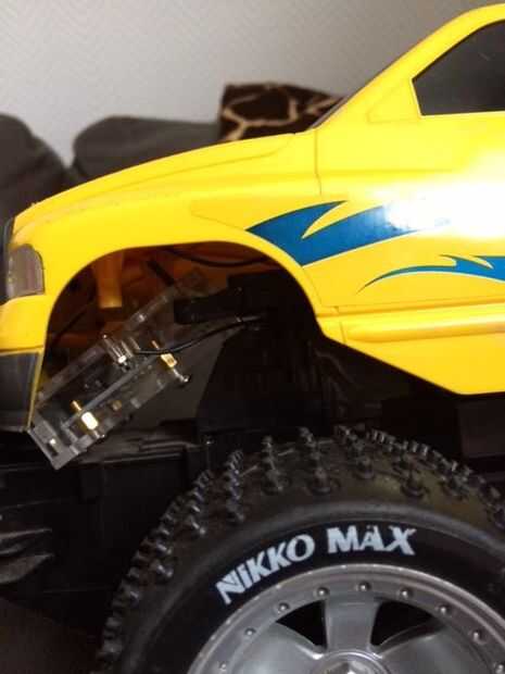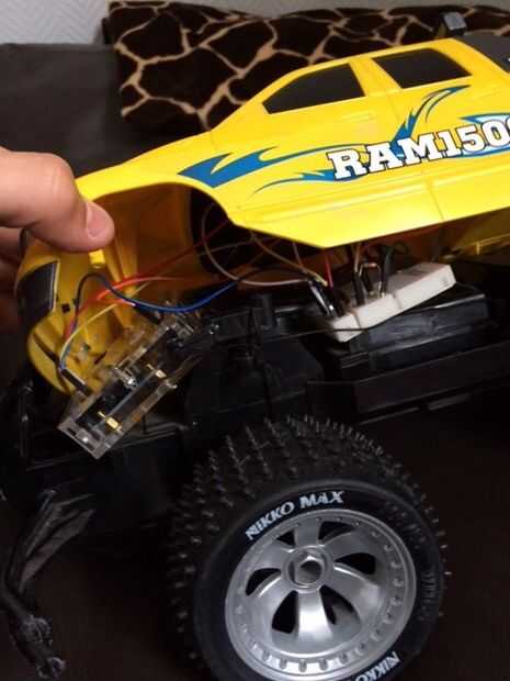 Ahora que todo lo has conectado a tu coche rc puede poner el coche rc detrás juntos y tomar a través de los LED en el techo de tu coche rc para que se vea como una sirena. Asegúrese de no bloquear la conexión de USB de tu Arduino de lo contrario no se puede conectar un powerbank a él.