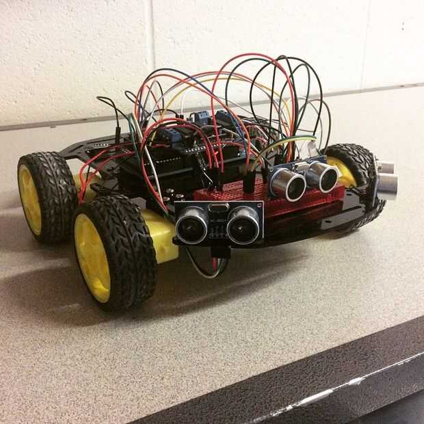 BOBO, es mi intento de un arduino base, plataforma de robot autónomo. El pequeñín está basado en un arduino mega, aunque el estado base podría ser procurado en un Arduino Uno o similar. Tiene 4 motores independientes control de cada rueda y como de la derecha ahora 3 sensores de HC-SR04 Ping para interactuar con su entorno. Él esparce alrededor conducir hacia adelante hasta que detecta una obstrucción. Si el obstáculo está directamente delante de él, ralentizar y parará, elegir una nueva dirección y luego seguir su camino feliz. Si uno de los sensores laterales detecta un obstáculo este curso correcto y evitar chocar contra el objeto. Mis metas actuales para el proyecto es implementar unos sensores más para permitir que el robot elegir qué dirección él volverá cuando esté en curso de colisión. Además estoy experimentando con un sistema de control del acelerómetro basado para conseguir conducir recta o con alimentación para hacerla girar en un arco preciso. Si esto no funciona probablemente se implemento contadores de rueda. Finalmente me gustaría emplear un sistema LIDAR y aplicar algunos algoritmos de SLAM en Linux / PI basado en software de mapeo que si te dejo BOBO vaya en un nuevo entorno, construir un mapa digital de la zona y tal vez tome las fotos y colocar en ese entorno.