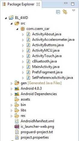 El código utiliza una librería para trabajar con memoria EEPROM AVR. Placa Arduino por USART del módulo Bluetooth recibe datos listos para el motor izquierdo y derecho. Se realizan todos los cálculos básicos en la aplicación de Android.