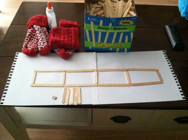 Para el marco, split más lugar los cinco piezas de una longitud stick aparte. En la parte superior y debajo de estos palos, coloque palillos regulares. Paso muy simple!