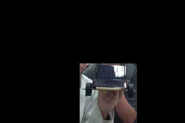 ok así que lo primero que tienes que hacer es conseguir todas las cosas que necesita un pequeño tablón de madera de balsa, un motor de 2 voltios, 2 barras huecas pequeñas que usted puede cortar, un manojo de cables, algunos clips de alambre, una barra no hueca que un engranaje pequeño puede ir alrededor de todo así que un pequeño engranaje y abisal que el puede ir en el motor , alguna cosa para apuntalar los paneles en el coche y 2 paneles solares y cinta adhesiva y algo para hacer en a ruedas legos son buenos para esto