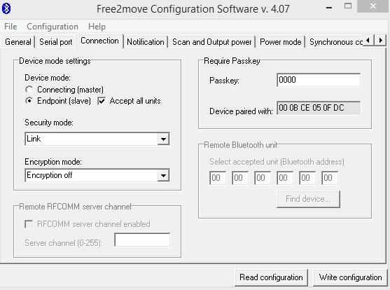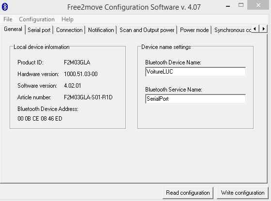 Módulo de le F2M03GLA est très facile à paramétrer et à mettre obra de at. Par de fabriqué Il est Free2move et est distribué par www.lextronic.com entre autres. Il consomé très peu d'énergie et peut porter jusqu'à 50m en terreno descubierto. Tipo de est hijo profil blutooth SPP et présente une en de enlace RS232 3.3V (atención aux adaptaciones de la tensión).