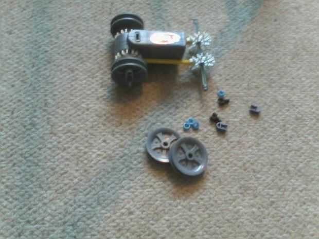 Hemos creado un robot para una competencia de robótica del colegio. La competencia fue controlar remotamente un robot que podría recoger una pelota de golf, maniobra de un curso que incluye puentes apretadas vueltas y una pista de pendiente de 30 gra
