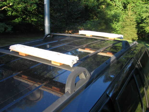 quería una baca para llevar barcos y madera y todo eso. Estaba a punto de comprar el NRS rápido y fácil para techo-parrilla-Potagia, pero ninguno de nuestros coches tiene los canales de la lluvia. Entonces, ¿qué hacer?Este estante evolucionó desde u