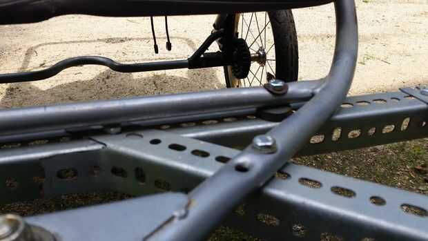 L-marco acero con los agujeros pretaladrados (longitud se puede variar gracias a bicicleta tamaño y silla de paseo, utilicé unos 7,5 pies o pie de cuatro polos)