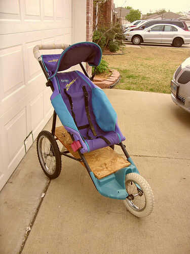 * Trotar cochecito (éste era $35 en una tienda de segunda mano, también está disponible barato en ventas de patio y acera el día de la basura gratis)