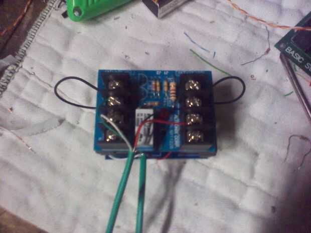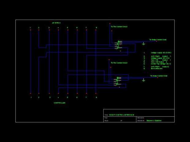 Al encenderlo, el controlador verifica que el joystick esté centrado. La tensión suministrada en el centro es cerca de 2.5 VDC. Sabiendo esto que necesitaba para permitir que la energía-hasta completar antes de asumiera el control. Usé dos relés DPDT. Cada dirección de la palanca de mando tiene dos líneas de control, los pines 2, 4 y 5, 7. Conecté el común en el relé para la alimentación de la tarjeta de control, el N.O. al circuito de Arduino Uno y la N.C. a la palanca de mando.