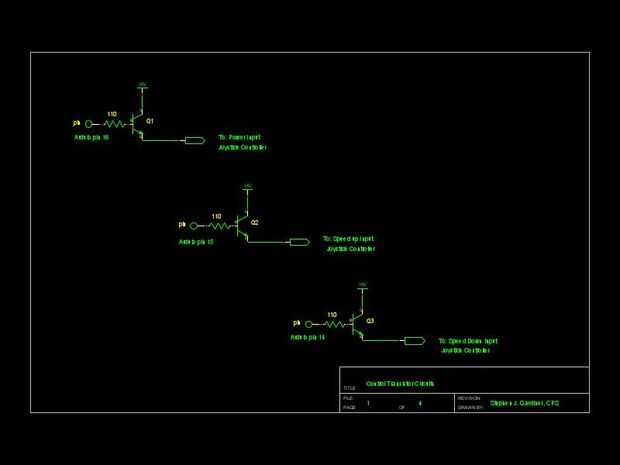 Activación de la unidad y el control de la velocidad. Otra vez usando la fuente 5vdc del controlador joystick yo soy disparo un transistor para cada entrada de pulso. Los botones de potencia y velocidad son momentáneos, en este caso se utilizo el software para activar el pin de salida Arduino luego alta baja con un retardo de 500ms, simular una pulsación.