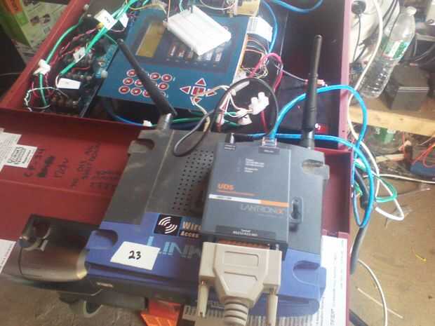 Durante la programación que conectado a Arduino usando el USB. Pero para controlar sin ataduras que necesitaba otra opción. Desde teniendo el panel de alarma contra incendios y gabinete decidí reutilizar lo que tenía en vez de comprar nuevos. Así que durante la operación normal había desconectado el USB y había conectado un TTL a rs232 convertidor a los pines 0 + 1. Yo también reutilizar un viejo Ethernet a RS-232 conectado al convertidor TTL y un muy viejo router inalámbrico de Linksys 80211b. Configurar el router para puente de red de mi casa a través de un router Linksys G. Puede telnet en el Arduino usando un PC o un teléfono móvil en mi wifi de la red y enviar comandos a las salidas de control. Sin embargo, esta conexión es demasiado lenta para hacer los cambios de programa. Todas mis órdenes son una carta ordena todo en mayúsculas. Por ejemplo, O = On, F =, T = toma el Control / invalidación.