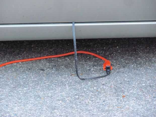 Por supuesto, si el cable del calentador está saliendo por la puerta y usted está haciendo la conexión entre el calentador y el cable de extensión fuera del vehículo debe utilizar algún tipo de cubierta a prueba de intemperie para mantener todo seco y seguro.