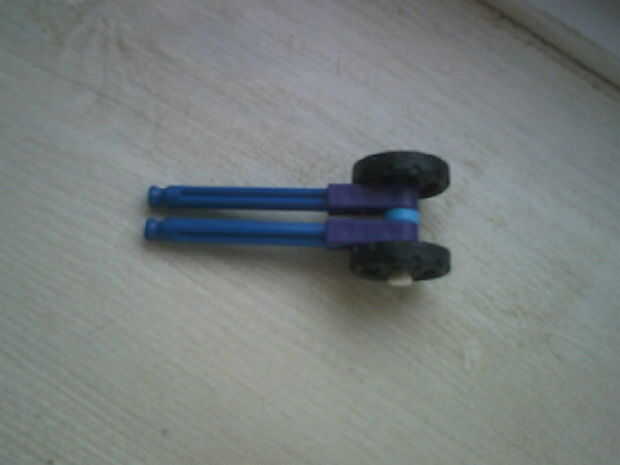 el Yakul 31415 tiene dos bandas de goma envueltos alrededor de una pieza en el eje de propulsión.  las ruedas grandes permiten viajar más lejos y le dan velocidad. el parachoques es la única arma.  Anteriormente tenía una barra en frente de otro coch