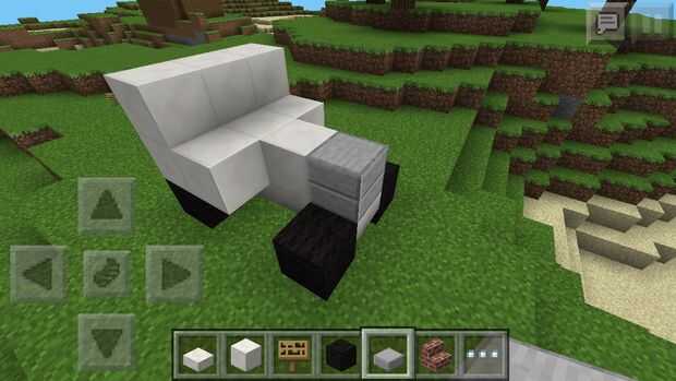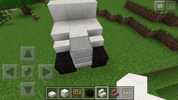 Parece que es casi un camión al final de este paso! Primer lugar 3 cuadras contra que atrás hemos construido paso pasado. Luego coloque un bloque contra ese derecho en el medio. Ahora debería tener una pequeña T. A continuación, agregue dos losas de piedra contra la parte inferior de las escaleras en lugar de T. en el lado hacia el frente. Entonces otra vez en los lados colocar escaleras hacia el exterior. ¿Es casi la apariencia como un camión todavía?
