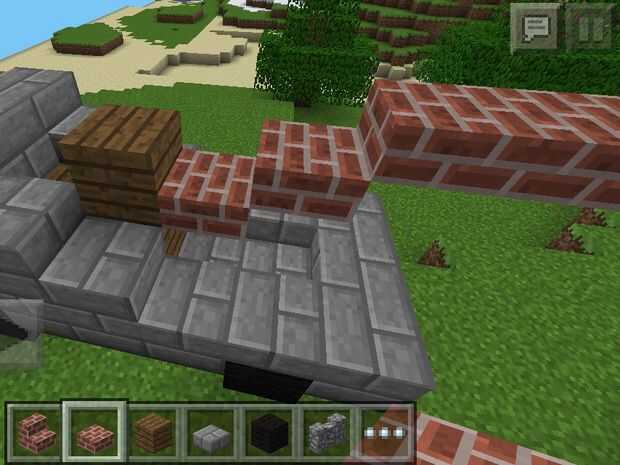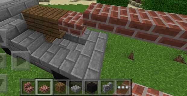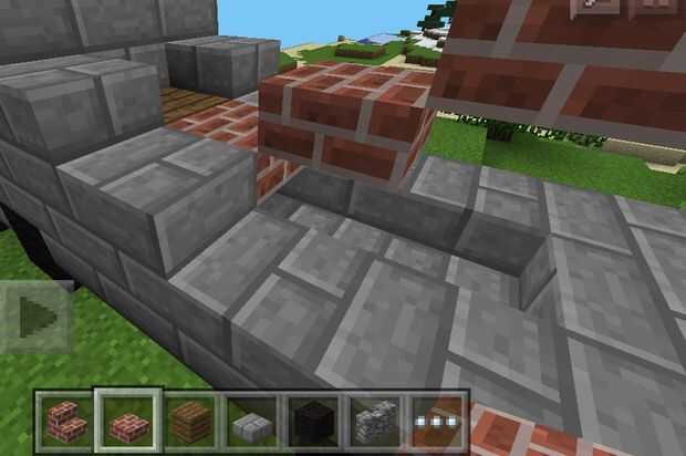 Para terminar la vuelta solamente sustituya las tres cuadras solo colocamos losas de ladrillo. Deshacerse de ese bloque detrás de ellos y vuelva a colocar los dos debajo de él. Hacer lo mismo una vez más. Finalmente añadir soporte poner dos escaleras abajo.