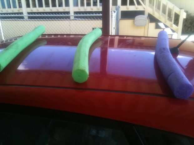 mi wakeboard no cabe en mi maletero porque tengo subwoofers, y cuando estaba en el asiento trasero fue incómodas e inseguras para llevar pasajeros. Así que ideé una manera de mantener mi Wakeboard en el techo de mi coche. Se mantenga de forma segura,