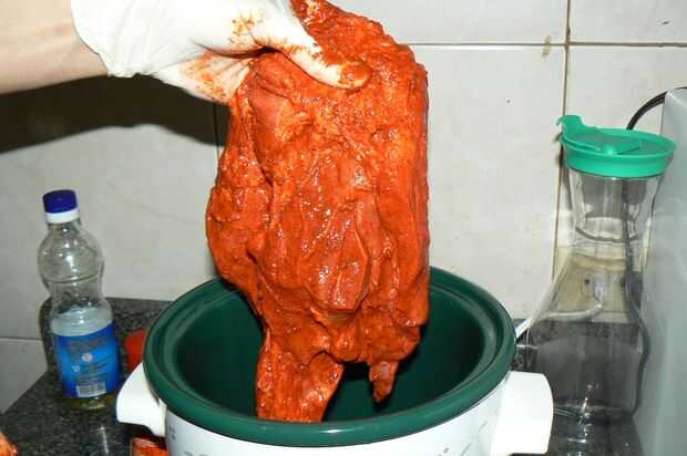 -Después de colocar todas las piezas de carne de cerdo en la olla, sólo colocar la temperatura a baja o media y dejar de 12 a 15 horas para cocinar (las horas no importan mucho, en mi forma de pensar en este caso las horas más la suave la carne obtendrá).