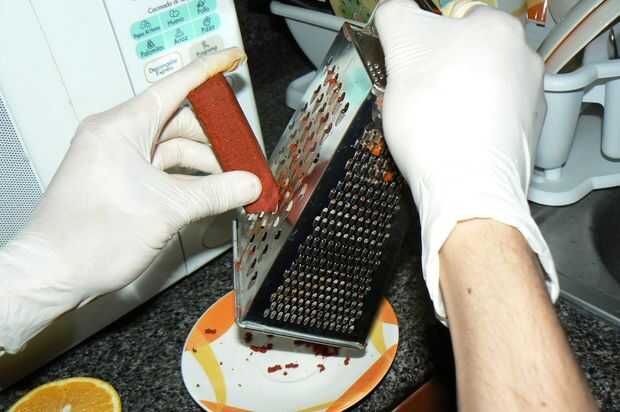 -Cortar la barra de pasta de achiote en piezas finas, o si eres un poco perezoso como yo use una rejilla de queso y poner en un cuenco.