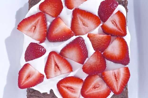 Cocido al horno en la parrilla de Brownies con fresas postre (6 / 7 paso)