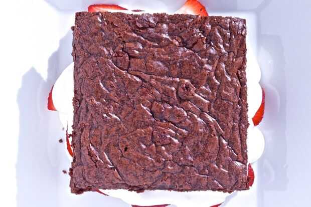 Cocido al horno en la parrilla de Brownies con fresas postre (7 / 7 paso)