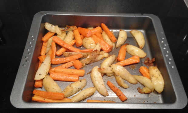 Cocer las patatas y denomina durante 40-50 minutos darles la vuelta después de 25-30 min cocer al horno hasta que se tornen doradas.