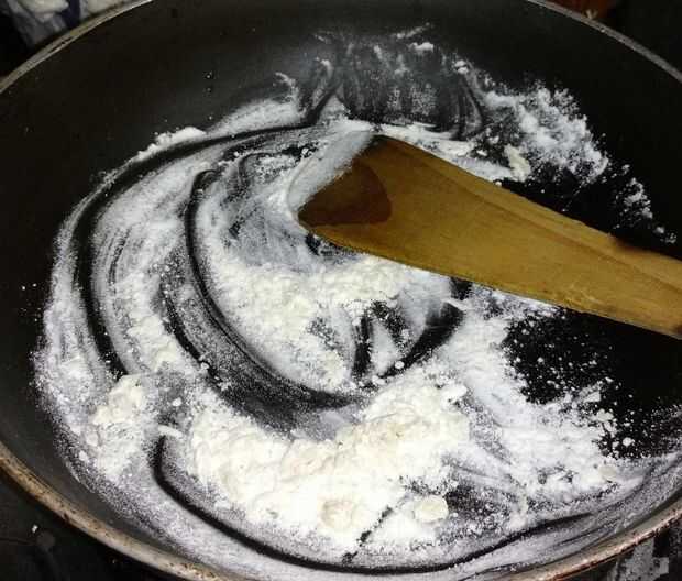 Derretir la mantequilla en una cacerola. Añadir la harina y freír hasta que se vuelve opaco.