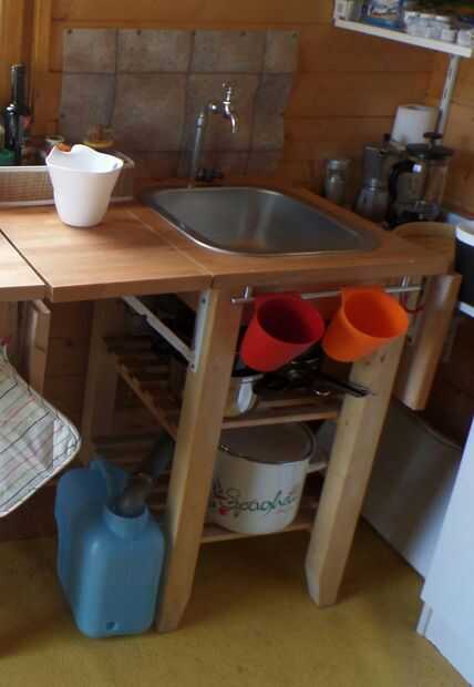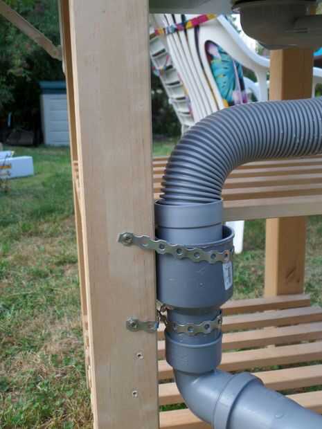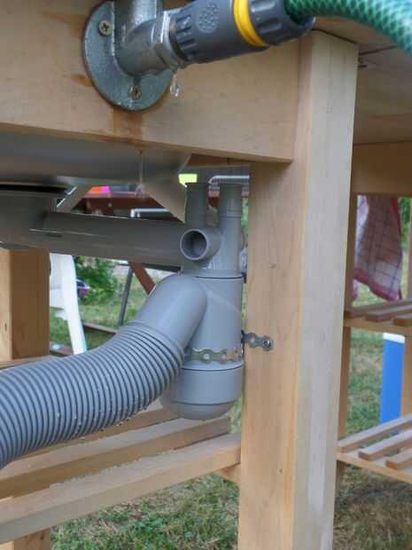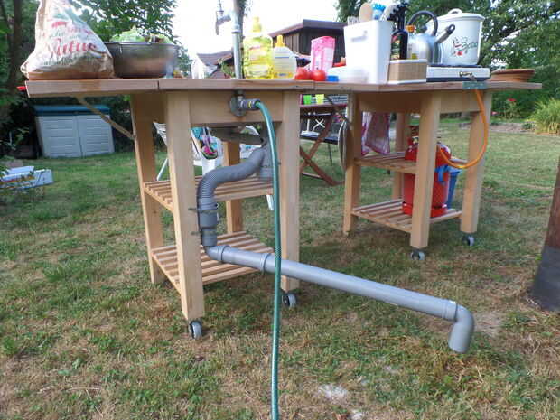 Para la salida de adapté el thingi de Ikea para algunas tuberías de agua estándar. Me tomó algún ensayo y error para llegar a la versión final. Pero ahora tengo a configuraciones. Uno para el aire libre, cuando el agua se dirige en la tierra. En el interior pasa el agua en un recipiente o cubo (bruja tiene que ser vaciado con regularidad).