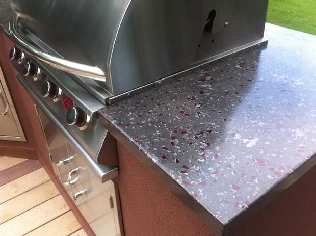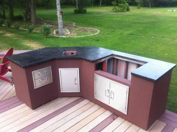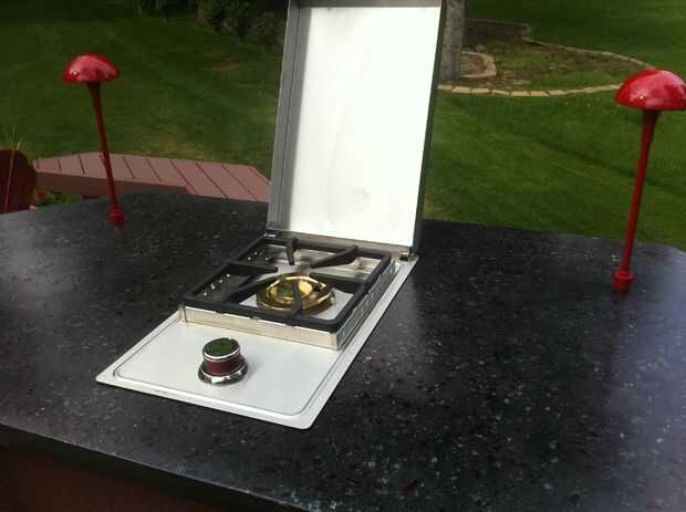 Este material es pesado, no se equivoquen sobre esto. Y por supuesto, tuve que hacer la pieza más grande en una vaciada. Recogí unos 6 de los más chicos de mi barrio, y realizamos los contadores a las bases, que había colocado previamente en la cubierta. Silicona se utilizó como el pegamento, y después de los contadores se pusieron en su lugar, he instalado los componentes restantes. El quemador de la parrilla y el lado son unidades Calflame. Las puertas fueron compradas en línea, estos son bastante fáciles de encontrar. Las setas luces son de baja tensión, y hemos querido rojo así que había que desmontarlas y pintar. Rustoleum es una gran pintura al aire libre. Esto han disfrutado mucho y utilizar casi todos los días - incluso en el invierno en MIchigan. Concreto era casi nuestra única opción para sobrevivir en nuestro clima, con la congelación que los ciclos. Con el cuidado adecuado, estos durarán muchos años. Lamentablemente, nos va reubicando pronto y va a dejar este gran programa de instalación para el siguiente propietario, pero realmente necesito ganar ese gran premio de la batidora, porque va a hacer esto en la próxima casa!