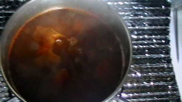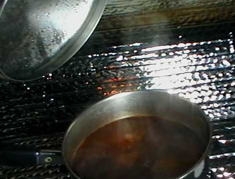 Después de 30 minutos hubo un burbujeo leve chisporroteo sonido y allí fue un montón de vapor. La sopa fue oficialmente caliente y listo para comer.