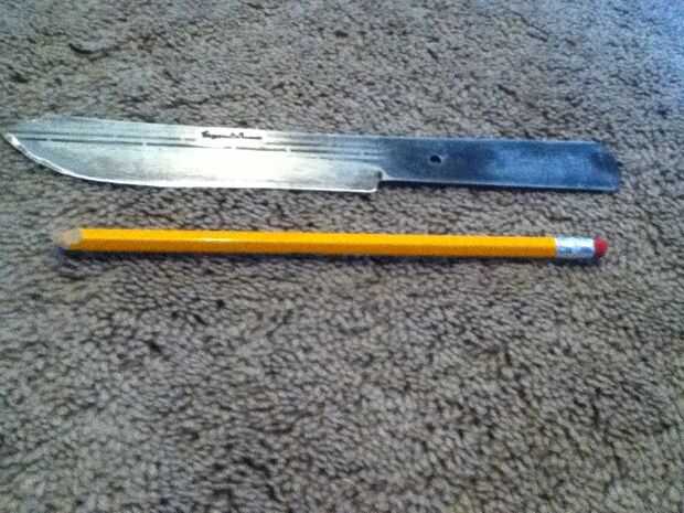 Este es un cuchillo de cocina que hice para mi mamá. Dijo que cuando ella utiliza las manijas en nuestra cocina cuchillos le duele la muñeca. Hizo una corta hoja amplia que rocas de fácil y me puso una manija curvada delgada. También usé un archivo p