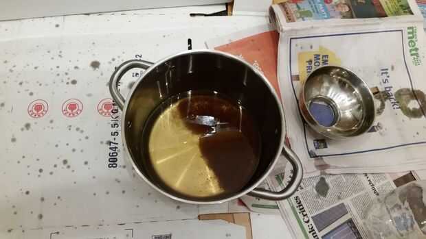 Como consigue cocinar el tocino, se descarga solo en el vapor, el grasa drena en la olla, y sólo puede seguir adelante. Según sea necesario, vierta la grasa en frascos de vidrio con tapa, no plástico aquí otra vez!