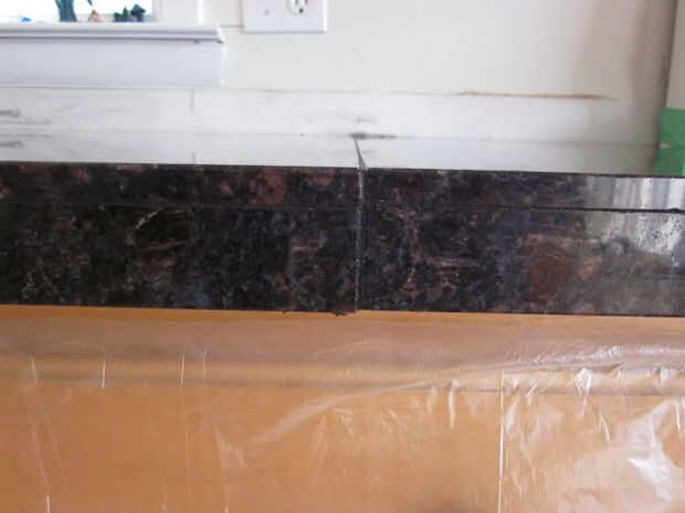 Tope mi granito juntos porque había bordes biselados. No quería 1/4 líneas de lechada en las encimeras.
