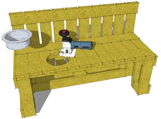 Utilizando una sierra de vaivén corta el agujero, siguiendo la marca del lápiz sobre la superficie de trabajo.