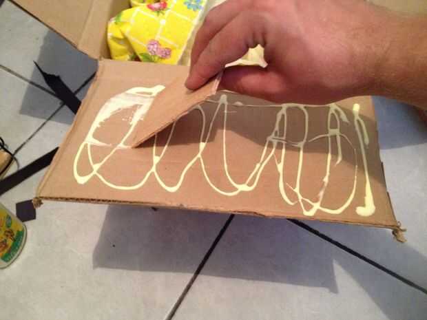 Primero cubrir la aleta en una fina capa de pegamento y luego cubrirlo en papel de aluminio (Asegúrese de que el lado brillante esté hacia arriba).