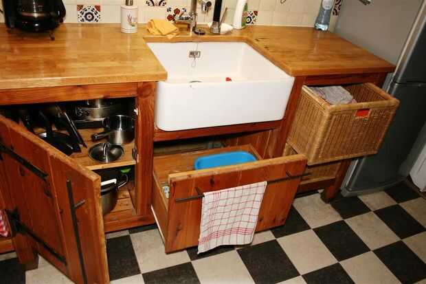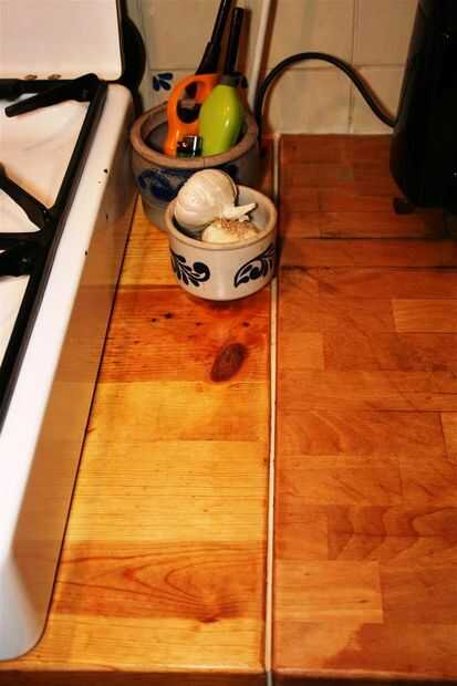 El fregadero de porcelana antigua grande que compré en línea así como de la parte superior de la haya en una tienda de la parte superior previamente había aserrado en la fábrica, esperando que encajaría bien sobre el fregadero, y con mucho gusto lo hizo.
