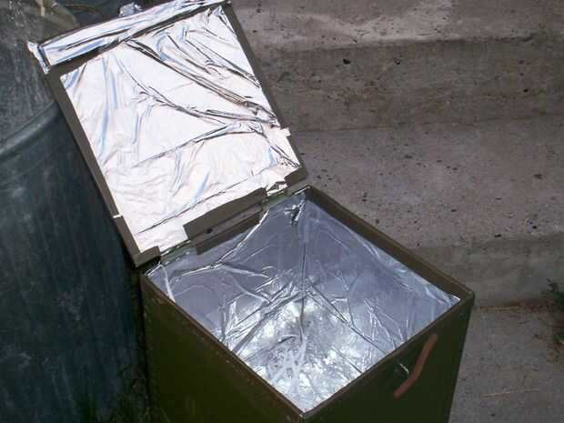 Si tienes una caja de madera o metal puede quedar con ese material de manta de la emergencia, esto ayuda a atrapar el calor aún más.