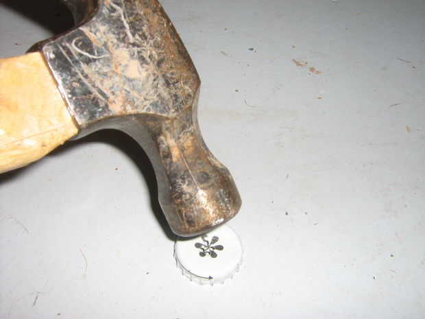 Utilice un martillo para crear una "chuleta" en la tapa de la botella de modo que puede drenar el combustible sin que se derrame.