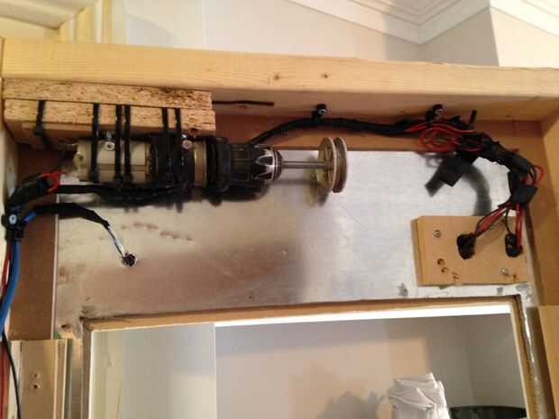 Por lo que hemos venido a lo largo de la manera, siento que somos todos amigos ahora... derecho?, de todas formas vamos a montar la puerta. Tan sólo la puerta desnudo huesos, fije sus bisagras la puerta primera y luego el marco. Ahora que se cuelga la puerta podemos empezar a poner en que las tripas de nuevo. Empezar con el motor, entonces la polea y el seguido por los paneles correderos. Había diseñado un calendario de 12 meses y había laminado que todavía podía utilizar nuestro creador de borrado seco. Vuelva a colocar los soportes de panel deslizante y los montajes del monitor. Coloque al monitor en posición y ejecutar todos los cables por el lado de las bisagras de la puerta. Ahora colocar la bandeja para teclado. Después se montan todos los componentes, vamos a poner en orden los cables y asegúrese de que todos corren el el lado de las bisagras de la puerta. Coloque la parte trasera de la puerta en mientras que alimenta todo el cable por la parte trasera, dejando suficiente holgura para permitir que la puerta Abra y cierre suavemente. Corrí todos mis cables a la computadora en nuestro sótano así que perforé un agujero pequeño en el piso para correr los cables hacia abajo.
