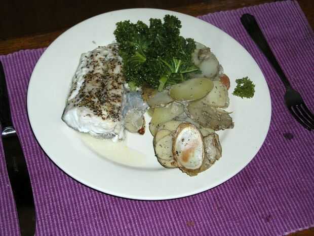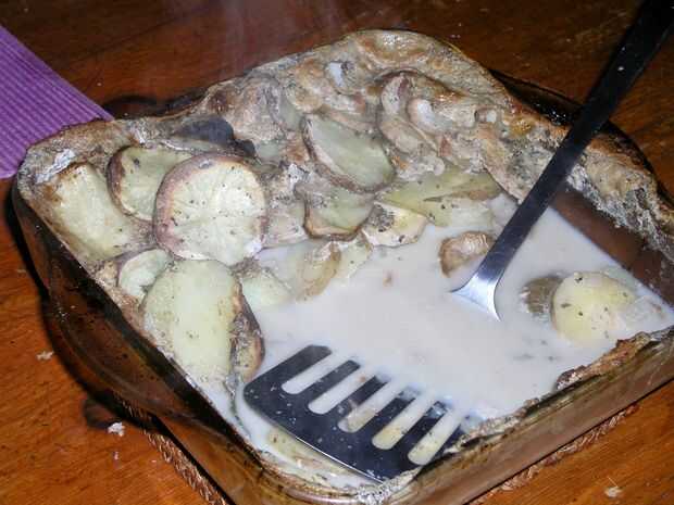 -una capa de patatas en rodajas muy finas en la parte superior se ve bien y mantiene la humedad.