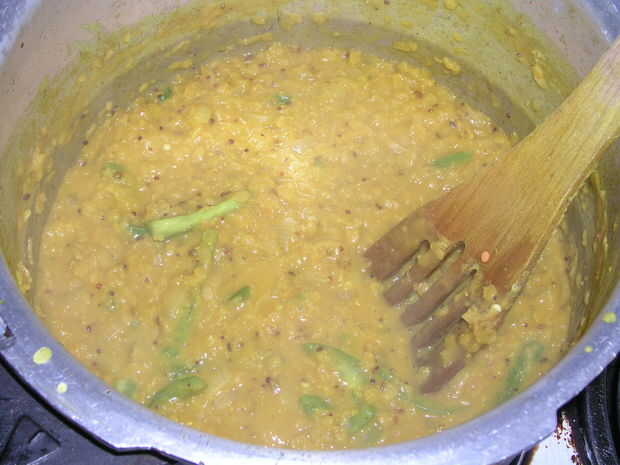-El tiempo que esto lleva depende de los pulsos que está utilizando. Lentejas rojas partidas toman cerca de 20 minutos, pero otros tardan más. Pasan por varias etapas durante la cocción. Al principio usted encontrará que el están en el agua tiene un sabor amargo, pero ésta desaparece muy rápidamente, luego ablandan gradualmente a través de. Después de esto, comienzan a perder su forma individual y hacer una salsa cremosa. Me gustaría parar en el punto donde esto ha comenzado a suceder, pero todavía hay algunos de la forma original de la izquierda de pulsos.