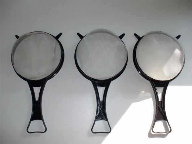 * Los envases deben caber en el marco de tamiz sin deslizarse a través de todo el camino. El marco del filtro debe contener el envase, no la malla. La curva de la parte inferior del envase marca la diferencia. Asegúrese de que los tamices con usted cuando usted compra los envases para dimensionarlas adecuadamente.