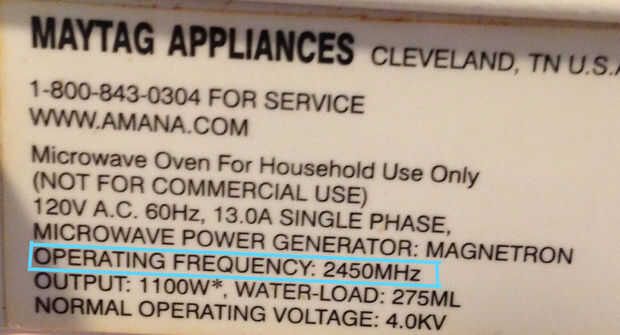 1. horno de microondas (1100W, frecuencia f = 2450MHz = > 2450 millones de ciclos por segundo)