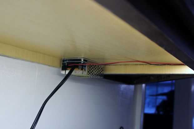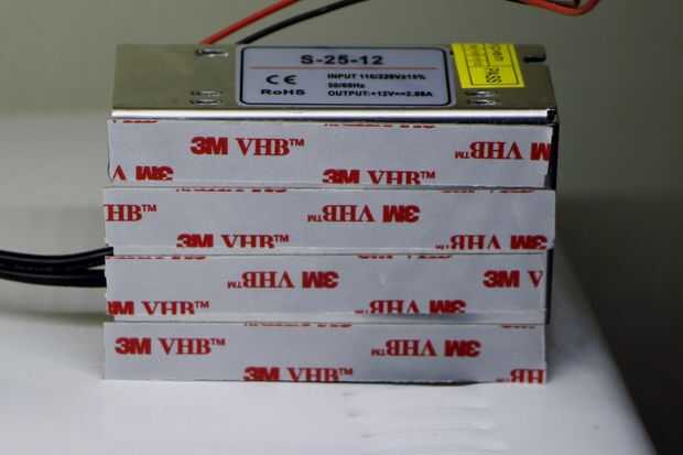 Utilizando la cinta VHB de 3M o cualquier otro fuerte cinta de doble cara, montar la fuente de alimentación en la parte inferior de su armario,