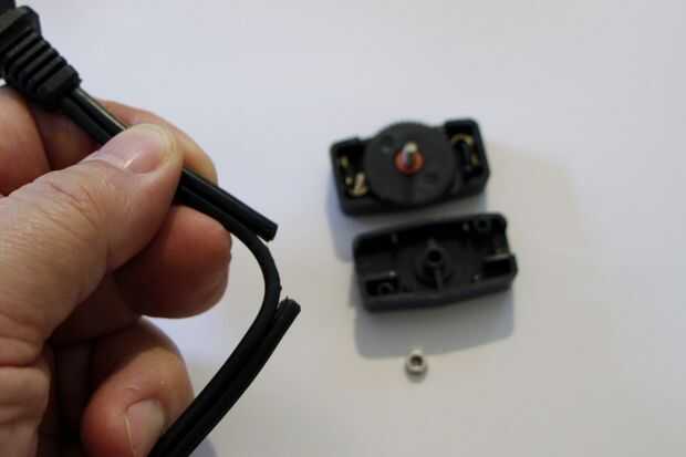 Cables con enchufes de 2 en el extremo contienen dos cables. Para instalar un interruptor rotativo que necesita primero quitar una sección corta de uno de los cables.