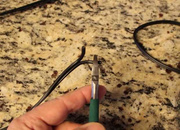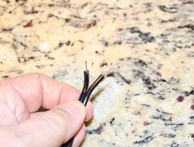 Antes de que el extremo del cable de alimentación puede conectarse a la fuente de alimentación al final tiene que ser dividido y despojado. Las fotografías muestran paso a paso.