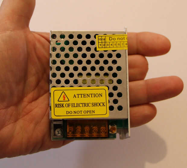 La fuente de alimentación que compré no es tan grande. Es probable que cabe en la palma de su mano.